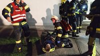 Im Anschluss wurde ein praxisnahes Einsatzszenario abgearbeitet. Gemeinsam mit allen beteiligten Feuerwehren wurde eine Personenrettung aus dem Gebäude durchgeführt. Mehrere Atemschutztrupps standen dabei im Einsatz und arbeiteten die Lage unter realistischen Bedingungen ab.